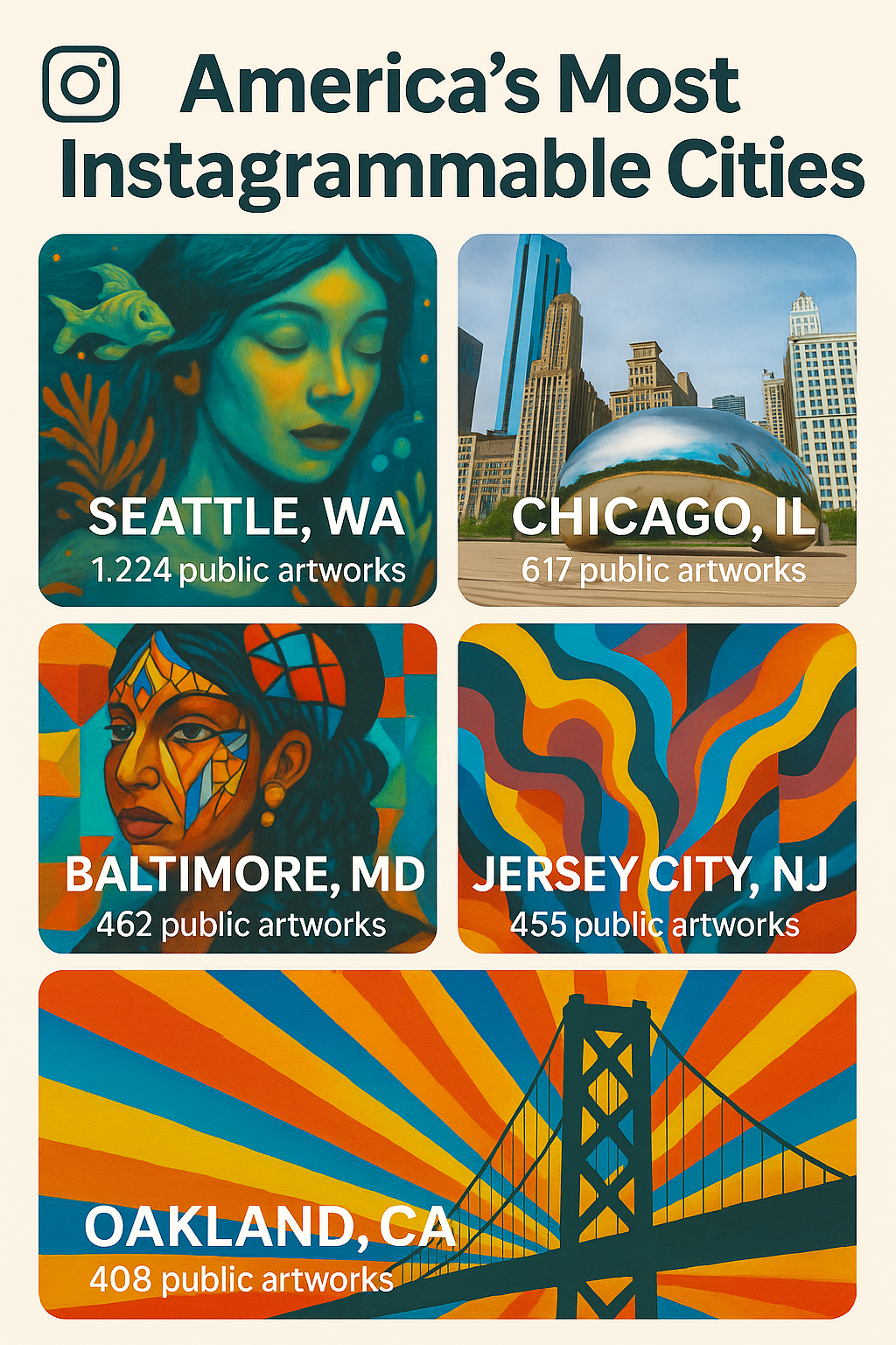 • Nationally, public art and galleries drive local identity — cities that excelled in these areas often ranked higher overall, underscoring how creativity fuels both culture and community pride.