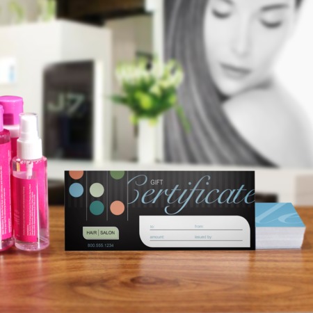 Although you can customize the size (and even the shape) of gift certificates, standard sizes are faster, easier, and more affordable to print than custom formats.