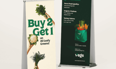 Whether you’re heading to a trade show or hanging signage outdoors, 33″ x 80″ retractable banners are portable and look polished. If you want to go big on your display, choose vinyl banners that are 96″ x 24″ or more. When designing banners, don’t forget the bleed, margins, and trim to ensure your design prints correctly. Lastly, keep in mind that using bigger text and bolder colors can give you better visibility.