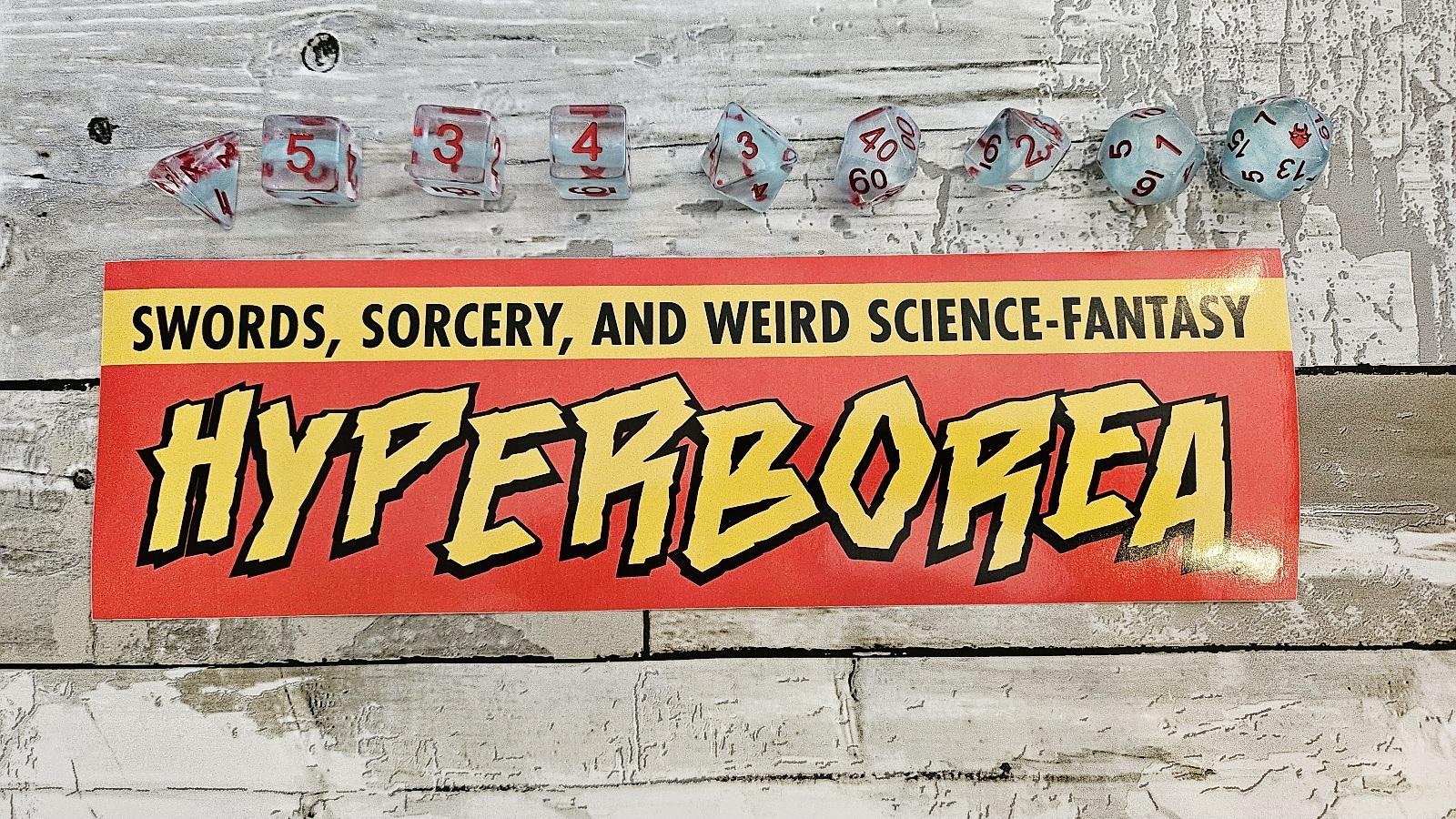 “High quality, vibrant colors. These new bumper stickers, advertising the sword-and-sorcery tabletop adventure game HYPERBOREA, have been a hit already!”